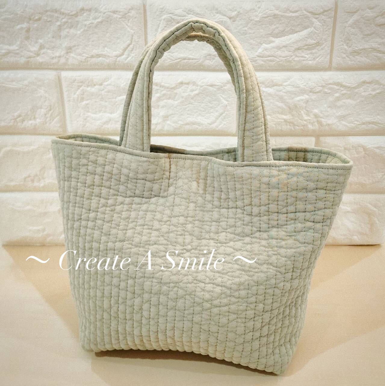 ※サンプルとして製作したミニトートバッグです。そのため、縫い目の荒い部分や生地のずれなどもございます。ご了承の上ご購入ください。