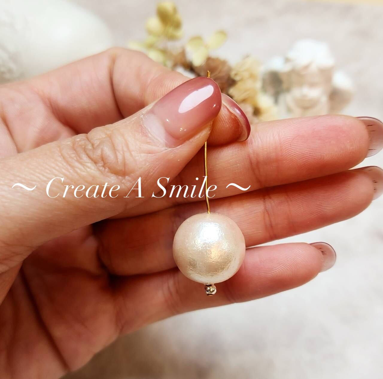 約16mmと大きな粒で存在感のあるコットンパールです。